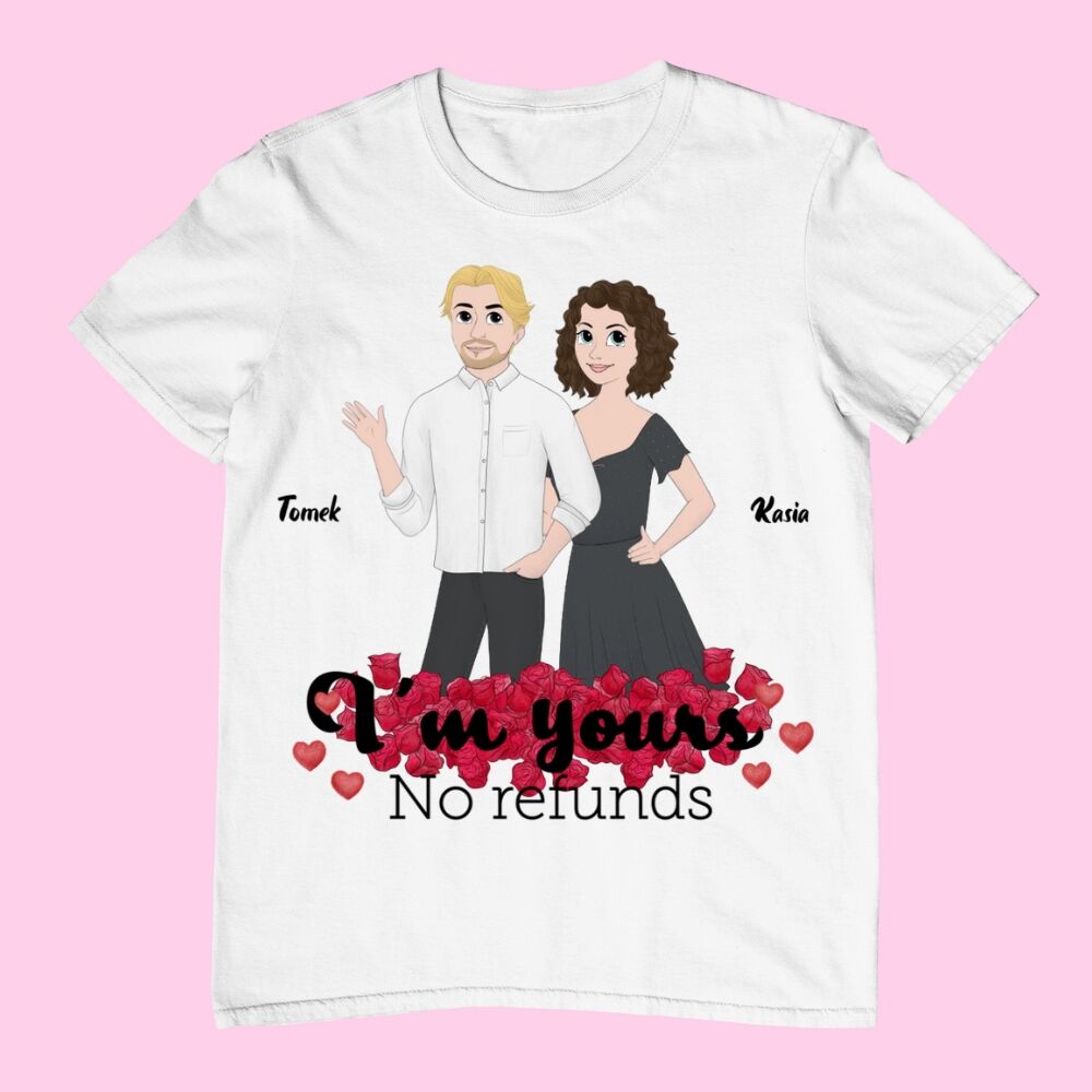 Koszulka dla par na walentynki – Im Yours no refunds – Personalizowana